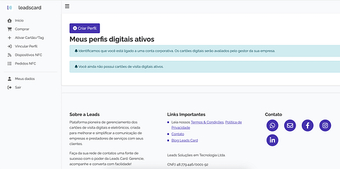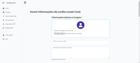 Nesse momento, o sistema irá criar uma conta para você na plataforma Leads Card. Em seguida, você poderá inserir as informações do seu perfil virtual.