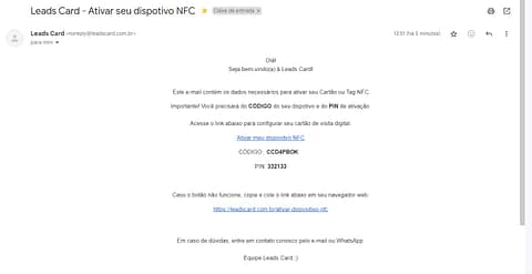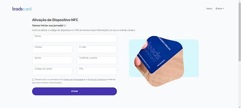 Página do sistema Leads Card para ativação.