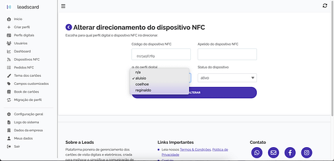 Direcionamento de dispositivo NFC pela plataforma do gestor Leads Card